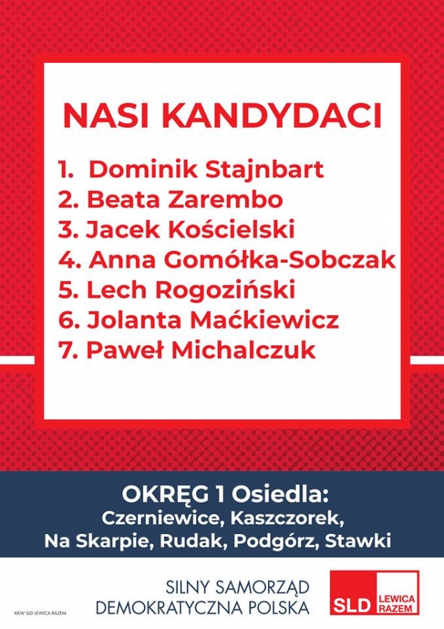 Kandydaci i Kandydatki KKW SLD Lewica Razem do Rady Miasta Torunia